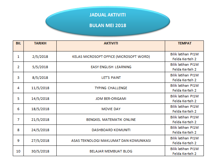 Tarikh :5 Mei 2018 Masa : 02.30 petang – 05.30 petang Lokasi : PI Felda Kerteh 2 Peserta : 9 orang Tujuan Power point merupakan salah satu aplikasi dari Microsoft yang sangat membantu terutama bagi sesi perbentangan di dalam kelas. […]
