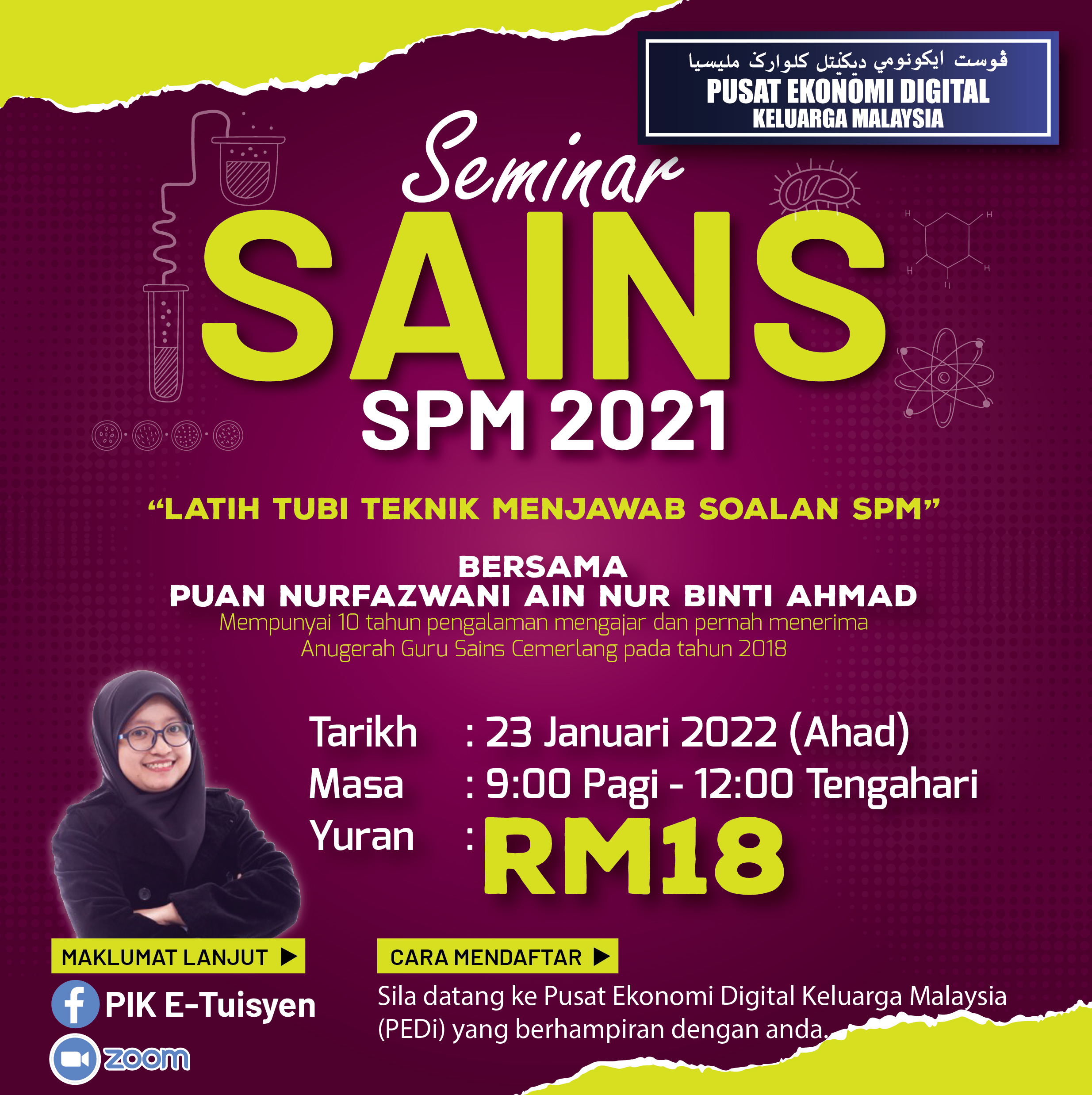 Pendaftaran untuk mengikuti kelas E-Tuisyen bersama PEDi secara atas talian kini dibuka untuk bulan Januari 2022.